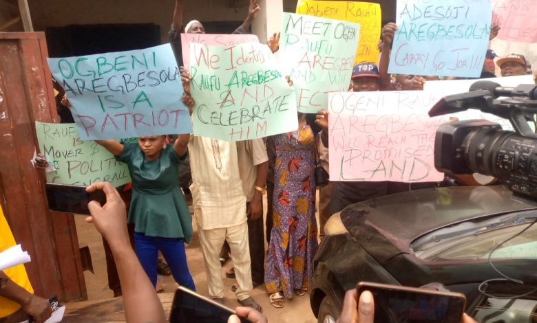 They later carried placards with different inscriptions like: Aregbesola will reach the promise land, God will continue to protect Aregbesola, Ogbeni is a patriot, Aregbesola is a mover and shaker of politics, Adesoji Aregbesola carry go joor, We identify with Rafiu Aregbesola and celebrate him.