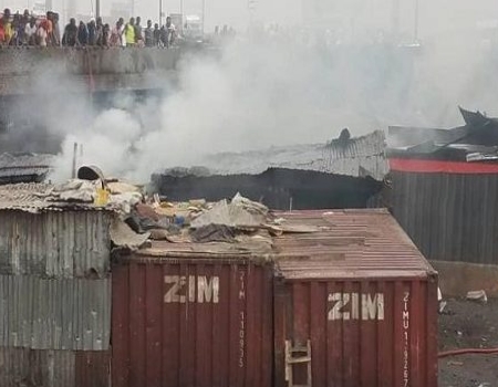 It was gathered that makeshift shops under the bridge caught fire around 2 am.