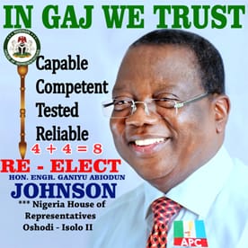 ” Hon. Ganiyu Abiodun Johnson is an experienced administrator and a detribalized leader who shall continue to represent the inherent interests of all the tribes in Oshodi-Isolo constituency II”.