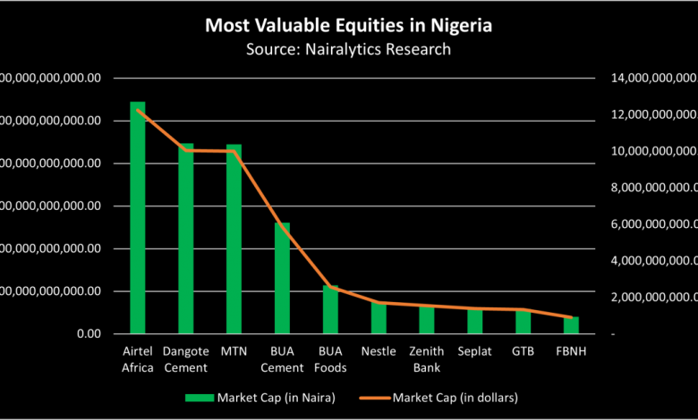 Nigeria’s top ten MVEs had a combined market valuation of N21.1 trillion or an equivalent of $47.5 billion assuming the official exchange rate of (N445/$1).