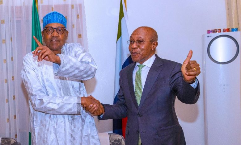 President Muhammadu Buhari on Monday met with the Governor of the Central Bank of Nigeria (CBN) Godwin Emefiele at the Presidential Villa Abuja.