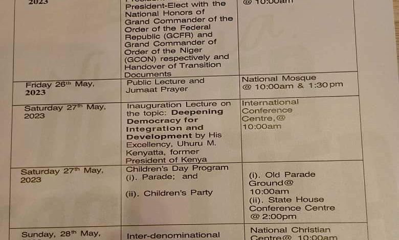 Sharing the programme he said, “Secretary to the Government of the Federation Boss Mustapha unveils the Inauguration Programme for Bola Ahmed Tinubu, the 16th President of Nigeria. The events begin 23 May.”