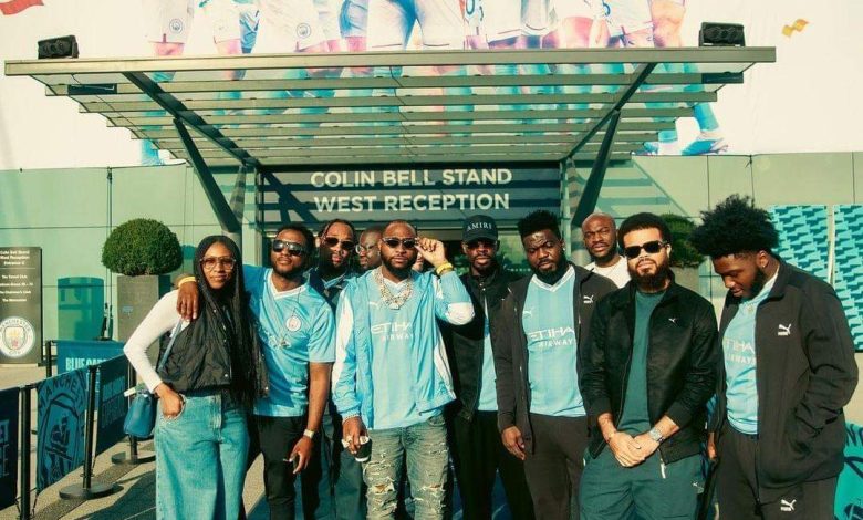 Afrobeats star, Davido, on Wednesday shared photos of himself at Etihad Stadium in the United Kingdom.