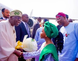 in a statement signed on Wednesday by Onanuga, the Lagos Governor Babajide Sanwo-Olu, the deputy governor, Obafemi Hamzat, and cabinet members received the President at the Presidential Wing of Murtala Mohammed International Airport.