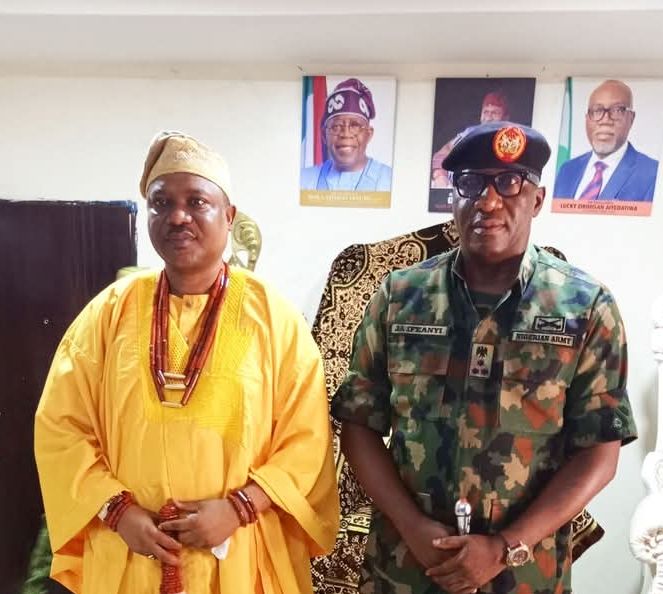 Brigadier General Ifeanyi, the 12th Military Commander to serve in Ondo State, was in the Palace on a courtesy visit and to familiarize with important personalities in the State, and in addition to seek for royal blessings from His Majesty.