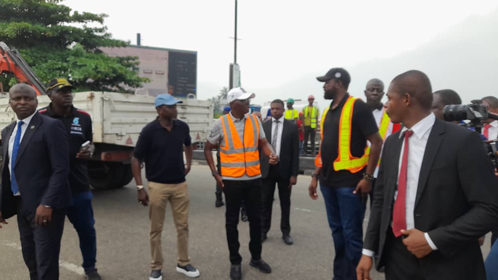 Following the ordeal experienced by Lagos residence on the Independence Bridge on Wednesday, Governor Babajide Sanwo-Olu has visited the area to assess the ongoing repairs on the bridge and Bonny Camp Road.