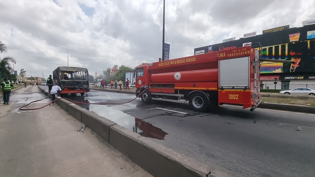 Passengers Escape Death As BRT Bus Catches Fire At Maryland
