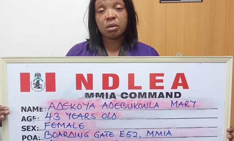 A statement by the NDLEA’s Director of Media and Advocacy, Femi Babafemi, on Sunday, said Adekoya, who claimed to be travelling to India for fibroid surgery, was arrested by its operatives at the Murtala Muhammed International Airport (MMIA), Ikeja, Lagos.