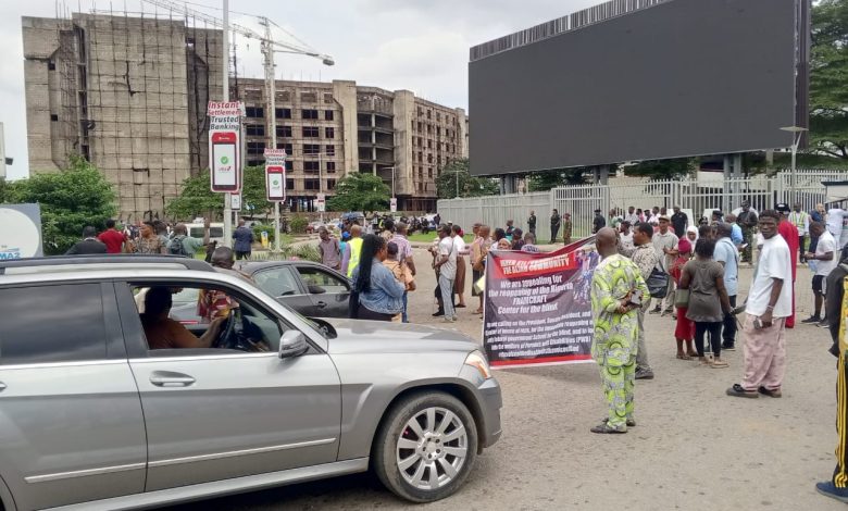 Hundreds of physically challenged individuals have staged a protest on Monday around the Murtala Muhammed Airport in Lagos, over the closure of a government-run school for people with disabilities.