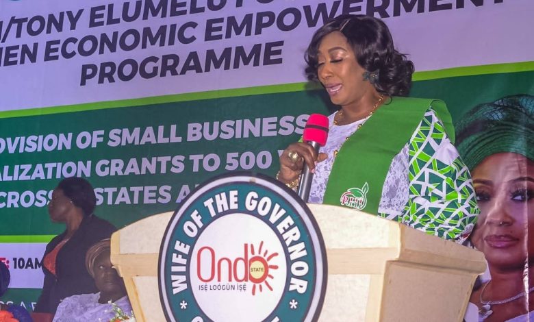 Mrs Tinubu, who was represented by the wife of Ondo State Governor, Mrs. Esther Oluwaseun Aiyedatiwa, said the grant was to boost small businesses in the state.