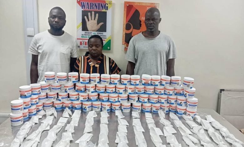 Operatives of the National Drug Law Enforcement Agency (NDLEA) have intercepted a total of 70 parcels of cocaine factory packed in walls of cocoa butter formula body cream containers heading to London, United Kingdom at the export shed of the Murtala Muhammed International Airport (MMIA) Ikeja Lagos, with three suspects arrested in series of follow-up operations across Lagos.