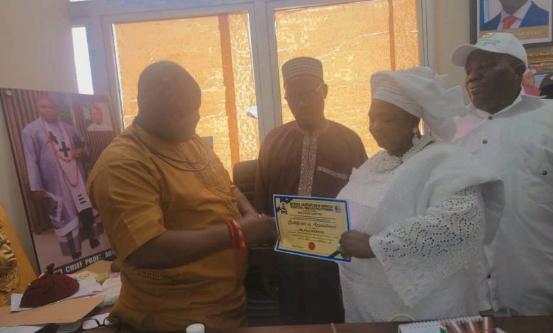 High Chief Ugbesia explained that the certificate was presented to Mrs. Modinatu Aliyu in recognition of her role as the Woman Leader of the Edo State chapter of the National Association of Nigerian Traditional Medicine Practitioners (NANTMP).
