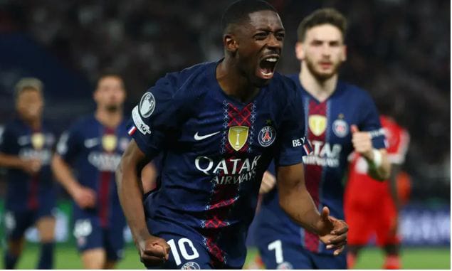 PSG regained the lead in stoppage time when Ousmane Dembele converted a controversial penalty awarded after Alphonso Davies was adjudged to have handled the ball following a VAR review by referee Sandro Scharer.